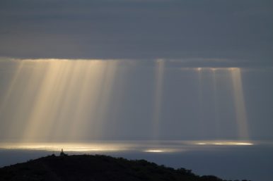 The island is divided geographically by a mountain range running north-south which can cause the weather on the island to be completely different on either side. A drive to the southern tip of the island was taken on such a day where the weather was sunny in the west and rainy and windy in the east.