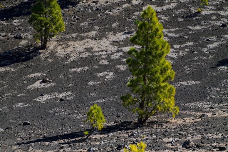 The area around the tip of the island are the newest. Vulcan Teneguia was the last volcano to erupt (1971) and the area around the volcano is still fresh, with very little vegetation and sharp rocks.