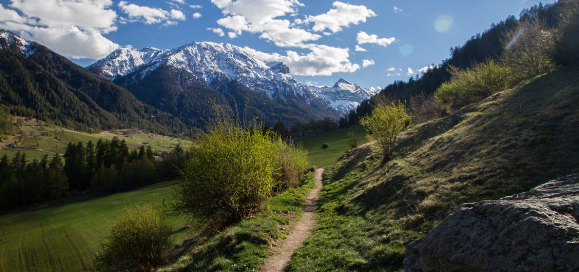 We spent the Easter holiday weekend in Val Müstair, a valley in the far eastern part of Switzerland close to the Italian and Austrian border. We started out early on Good Friday as the weather forecast had predicted that Friday could possibly be the warmest and sunniest day of the holiday weekend. As soon as we checked into our Swiss Historic Hotel, we were out the door again to hike from Santa Maria to Müstair to visit the Convent of St. John, which in 1983 became a UNESCO World Heritage site. The frescos are fabulous and we also visited the very informative museum about life in the convent. Spring greens were just poking through and the larches had bits of green needles and bright burgundy baby pine cones which were soft to the touch. The trail wound through the forest and before long we saw the tower of the abbey.