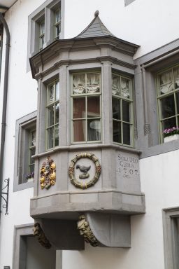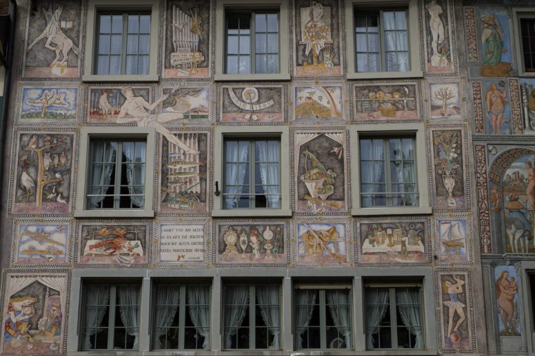 Stein am Rhein is known for its medieval city center with half timbered houses and elaborate frescoes.